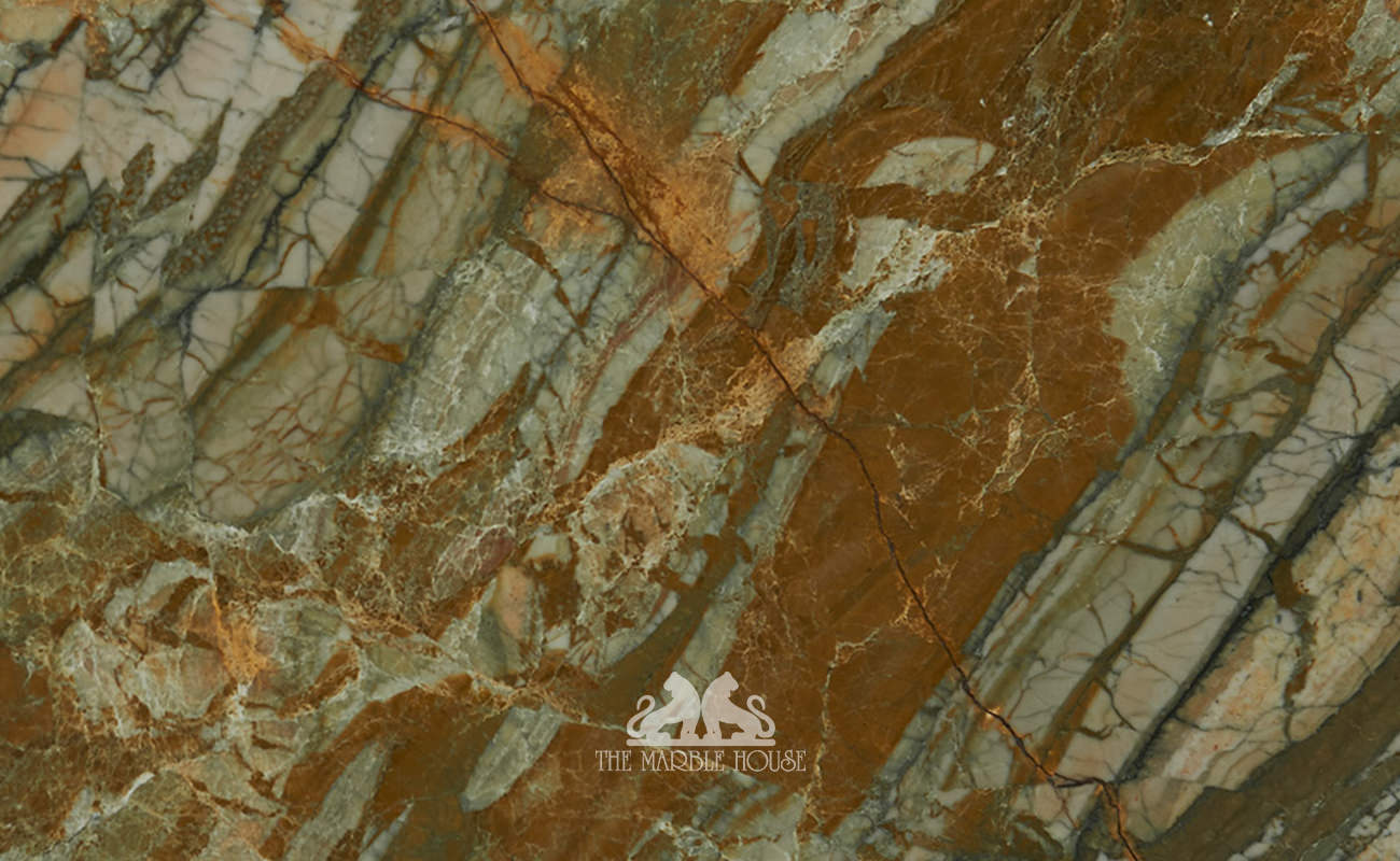 Pay tribute to nature and add a touch of the divine. Hilios Gold is a hypnotizing stone with a myriad of hues that will differentiate, elevate and immortalize your design.